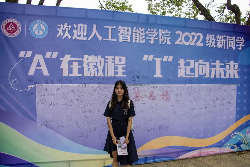 “A”在徽程,“I”起向未来。同学们在迎新展板上提笔写下自己的签名,标志着他们未来四年即将在安徽工程大学澳门六合彩内幕 放飞自己的梦想。欢迎新同学的到来,我们一起向未来!