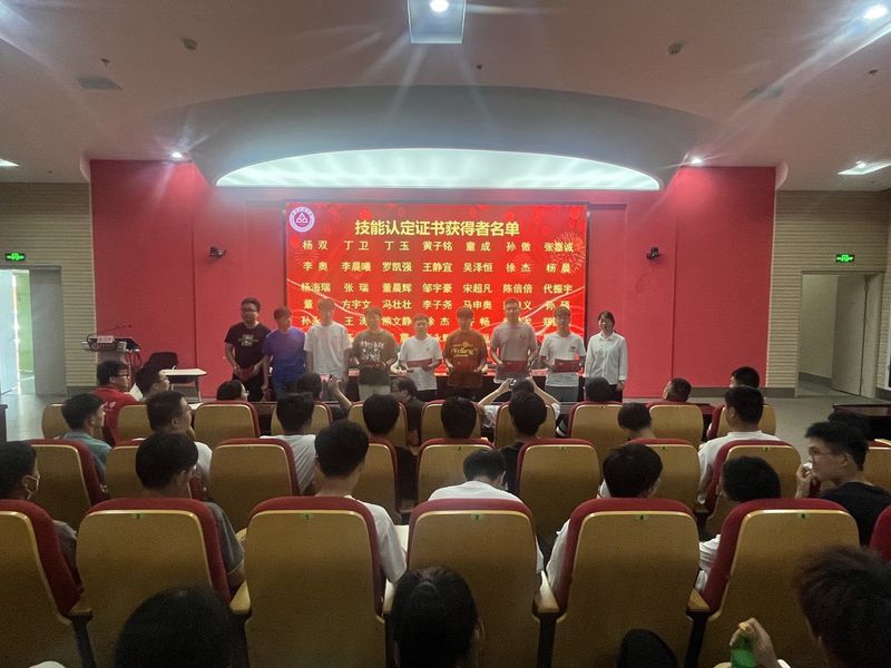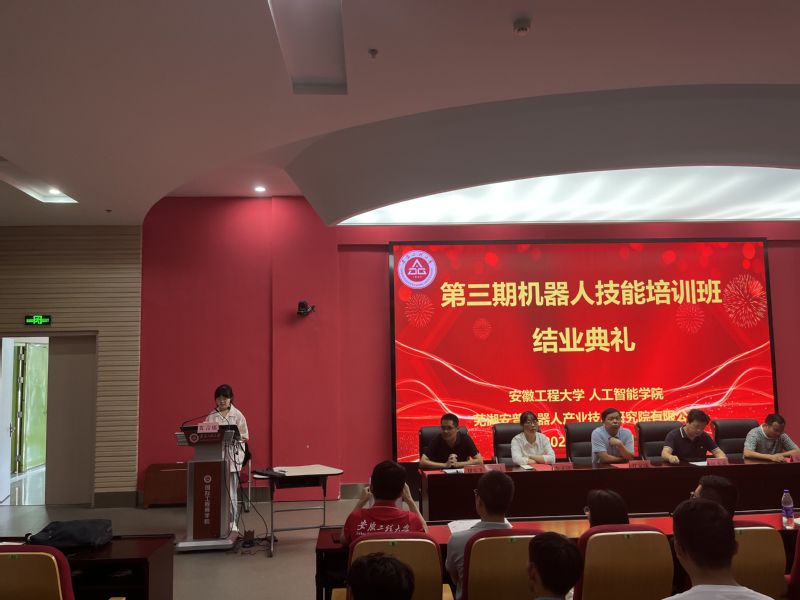 典礼上,江本赤宣读了《第三期机器人技能认定证书获得者名单及优秀学员名单》,李文江、江本赤、朱孟为学员颁发技能认定证书,任家钱为优秀学员颁发荣誉证书。张瑞同学作为学员代表分享了参加机器人技能培训的收获与感想。