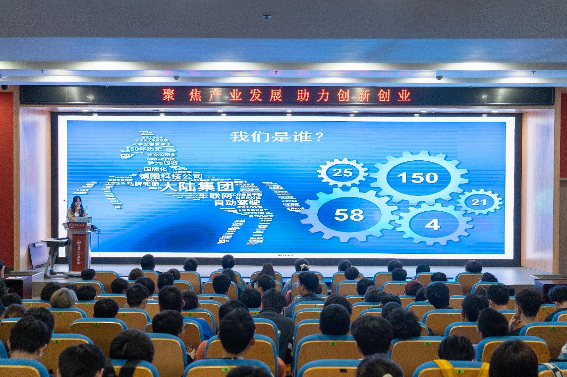 报告会的第二阶段,强玉凤向同学们介绍了公司的发展历程,并就公司的发展平台、专业实力、成长方向、薪酬福利、未来发展前景、校园招聘相关政策等进行详细介绍,同时表达了希望同学们到公司实习、工作的愿望。