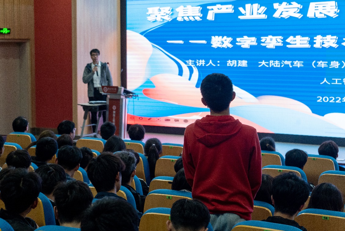 为贯彻落实“三全六专”工作要求,提升大学生专业能力,加强大学生对专业前沿技术的了解,引导学生树立正确就业观,11月3日晚,澳门六合彩内幕 特邀优秀校友、大陆汽车(车身)电子芜湖有限公司软件运营工程师胡建,来校开展优秀校友创业报告会。报告会的主题为“聚焦产业发展,助力创新创业——数字孪生技术在智能制造中应用”,学院党委副书记李文江、副院长江本赤、阚宏林老师、大陆汽车(车身)电子芜湖有限公司软件运营组和测试组经理夏坤、HR强玉凤以及澳门六合彩内幕 200余名本科生参加报告会。报告会由学院副院长江本赤主持。