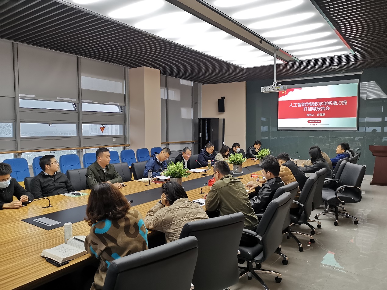 在图文信息中心601会议室举办教学创新能力辅导讲座,学院党政领导及全体专业课教师出席,会议由学院党委书记任家钱主持。
