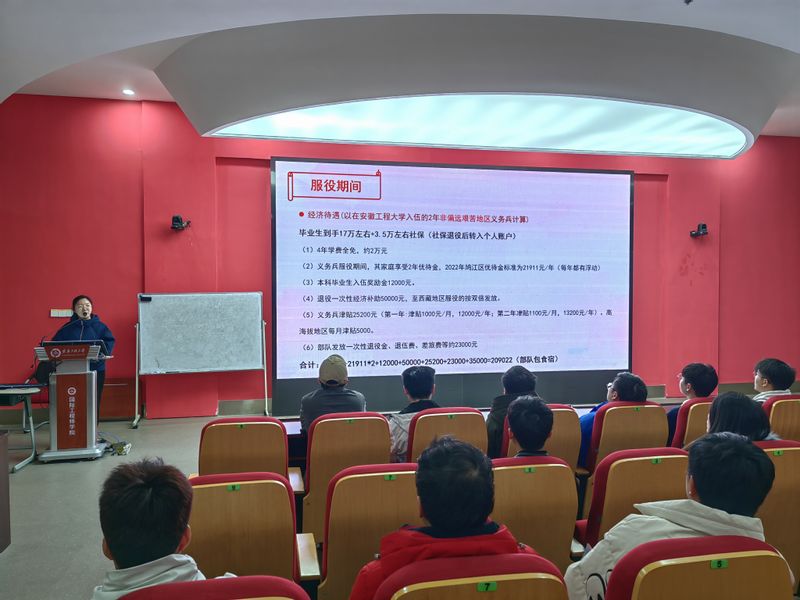赵成婧就征兵入伍政策作了详细的解读与说明,介绍了2023年征兵工作的优待政策、入伍条件、应征流程等内容,并对体检、义务兵与直招军士、应征地的选择等常见问题进行解答,教育引导毕业生把参军作为自己人生规划之中的重要历练或发展方向。