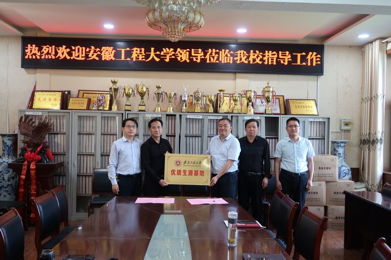 在千人桥中学,校长孙武、副校长王克胜详细介绍学校的历史沿革和办学情况。在舒城县第一中学,校长杜显忠、副校长汪本应、邵江徽分别介绍了学校规模和历年高考录取情况以及本届高三年级学情。在舒城中学,宣传组受到校长李少云、副校长许国兵及原校长何登保的热情欢迎,双方围绕构建长期、稳定、双赢的合作关系进行了交流讨论。三所优质生源基地负责人表示安徽工程大学历史悠久、底蕴深厚,开设的专业紧贴地方的经济建设和产业实际,毕业就业率高,实践能力强,特别是“三全六专”育人实践和“以学生为中心”的育人理念,深受学生和家长的认可与好评,是一所让学生舒心、家长放心、中学称心的好学校,纷纷表示将继续鼓励更多学生报考安徽工程大学,也欢迎学校在学生填报高考志愿期间前往设点宣传。