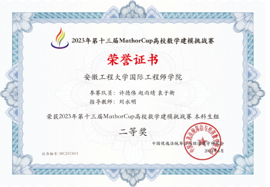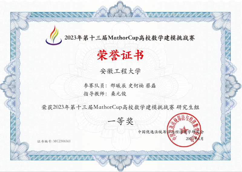 近日,2023年第十三届MathorCup高校数学建模挑战赛获奖名单正式发布,澳门六合彩内幕 学子荣获研究生组全国一等奖1项、二等奖1项;本科生组全国二等奖1项、三等奖2项,参赛奖3项。