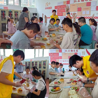 “彩虹课堂”流动儿童志愿活动主要内容为暑期功课辅导和趣味活动两部分。在社区开办的暑期托管班,孩子们安静的坐在座位上写作业,偶尔遇到难题,便举起小手向志愿者哥哥姐姐寻求帮助,志愿者们也十分耐心的为孩子们讲解题目,为他们辅导课业、答疑解惑。趣味活动也是妙趣横生:知识科普课堂,孩子们懂得了要明辨是非,尊重他人;民俗知识抢答赛,让孩子们感受到博大精深的中华优秀传统文化;室内趣味运动会,培养了孩子们团队合作,积极乐观的精神;脸谱制作、汉堡制作、笔架制作······,志愿者们协助老师布置现场,分发材料,陪同孩子们一起完成,多样的活动为孩子们过一个丰富多彩、充实快乐的暑假增添了一抹亮色。大学生志愿者们也在活动中收获了成长、快乐与感动。