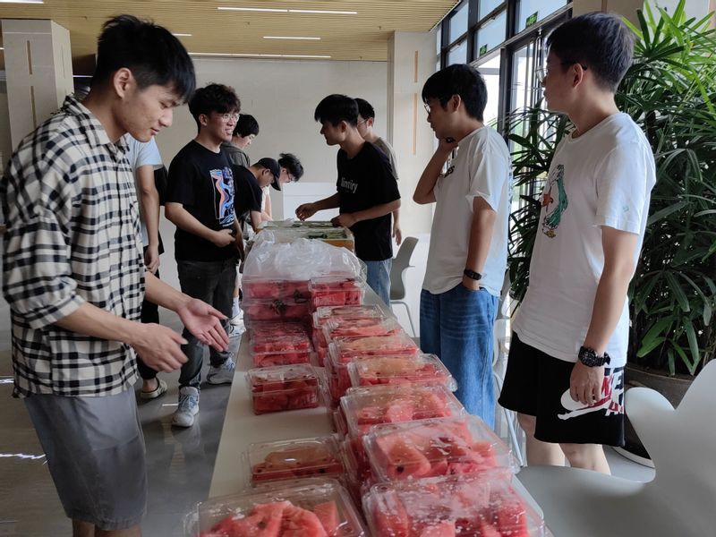 为了此次慰问活动顺利开展,学院设置了服务台,提前准备了西瓜、绿豆冰沙等解暑食品和一些小零食。上午11点半,结束了上午学习的同学们陆续赶来,领取慰问品。值班老师询问了同学们暑期学习、生活情况,叮嘱大家合理安排作息,劳逸结合、注意安全、提高学习效率,学院会及时帮助同学们解决遇到的问题和困难。