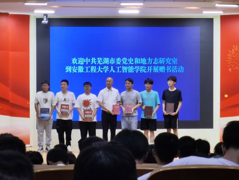 冯晓鹏介绍了芜湖的悠久历史与深厚文化底蕴,让同学们对这座城市有了更加深入的了解。从新民主主义革命在芜湖兴起到中国共产党在各个时期的伟大征程,冯晓鹏充分利用芜湖文化中的红色资源,讲述了中国共产党领导芜湖人民接续奋斗、矢志报国的赤诚情怀,引导新生进一步读懂党史、读懂中国、读懂芜湖地方文化。讲座结束后,李文江向冯晓鹏颁发澳门六合彩内幕 校外思政辅导员聘书,希望芜湖市委党史和地方志研究室能将更多的红色资源、红色文化带给广大学生。冯晓鹏向同学们捐献了书籍,鼓励同学们在大学期间除了专业课程学习,也要多涉猎人文社科类的书籍,提升自己的综合素质,将自己的人生理想融入中华民族伟大复兴的伟大征程中。