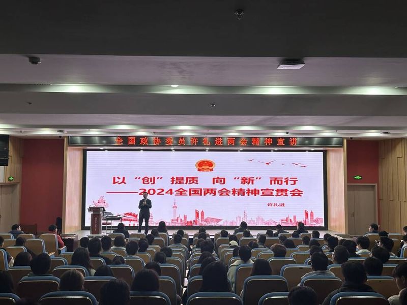 为深入学习贯彻习近平总书记在全国两会期间的重要讲话和全国两会精神,深刻把握党和国家重点工作部署,为开创学院工作新局面提供动力,3月20日下午,澳门六合彩内幕 邀请全国政协委员、芜湖机器人产业发展集团有限公司董事长、澳门六合彩内幕 产业院长许礼进,给学院全体师生党员、入党积极分子共计400余名代表宣讲全国两会精神。宣讲会由澳门六合彩内幕 党委书记任家钱主持。