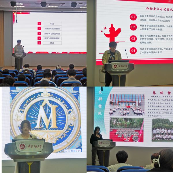 比赛共分为三个阶段。第一阶段,团支部代表结合支部建设、开展工作、获得荣誉、未来展望等方面进行风采展示,制度建设、学风建设、团支部凝聚力建设、志愿服务、学科竞赛等,充分展示了团支部的建设成果,彰显了支部的风范。在中场答题环节,由工作人员分发试卷,各团支部代表认真思索,谨慎答题,用自己的党团知识为所在团支部加分。随后,精彩的主题微团课宣讲为大家一一呈现。本阶段由团支书结合党团知识、规定、重要讲话精神等自行选题,结合所学所思开展宣讲,从党的二十大报告、红船精神、长征精神、广州起义等,团支部充分发挥特长,声情并茂为大家上了生动的一课。