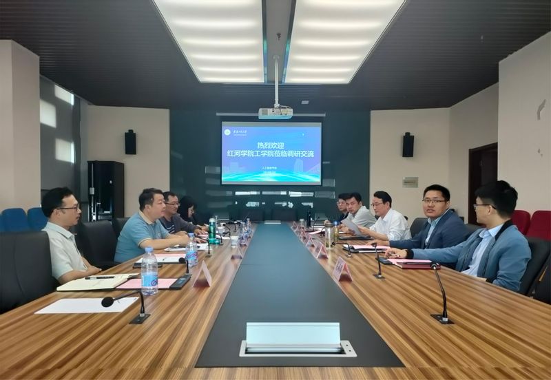 4月26日上午,红河学院工学院副院长汤松一行5人来澳门六合彩内幕 调研交流。机器人现代产业学院院长许德章、澳门六合彩内幕 副院长刘玉飞、学院办公室和系部负责老师及教学秘书参加会议。