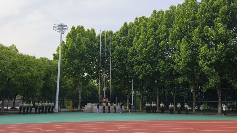 伴随着晨曦的第一缕阳光,国旗护卫队整装待发,同学们有序到达田径场。随着铿锵有力的步伐与同学们追寻的目光,国旗被顺利送往升旗台。在雄壮的国歌声中,五星红旗冉冉升起。