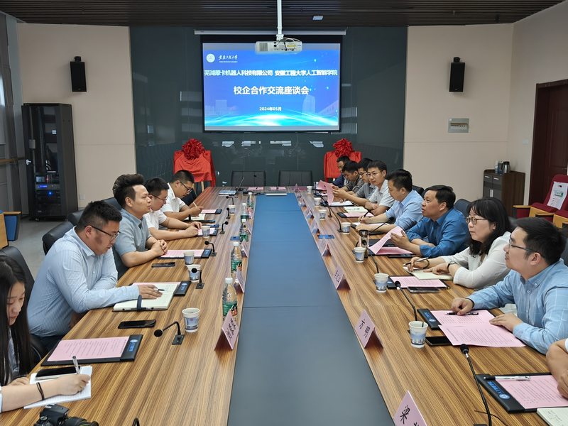 5月27日,芜湖藦卡机器人科技有限公司总经理罗涛、研发总监王琦、总经理助理程自强等一行5人来校交流调研,澳门六合彩内幕 部分领导及教师代表参加了座谈,会议由澳门六合彩内幕 党委书记任家钱主持。