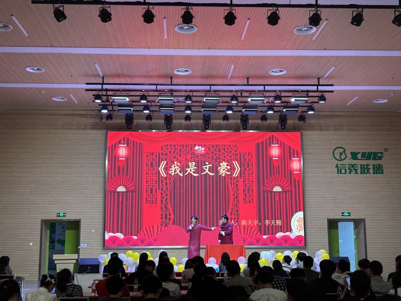 舞蹈《我的未来式》拉开晚会的序幕。徐帅等同学带来的歌曲《直到世界尽头》赢得大家晨晨欢呼。钱子超等带来的相声《我的江湖》将大家带到了一个武侠世界。由张璐等辅导员代表演唱的《粉红色的回忆》掀起晚会的第一轮高潮。徐盼、高义、周全、陈雅婷带来的舞蹈《Dreams come true》活力四射,点燃舞台。袁卫东深情演唱《无名的人》,传递着动人的力量和鼓舞。陈天宇、李天赐带来相声《我是文豪》,带领大家走进一个充满欢笑和文化的世界。毕业班学生代表带来说唱、《任我行》等歌曲串烧,呈现了一场丰富多彩、酣畅淋漓的视听盛宴。由梦溪乐堂带来的合唱《城南送别》,让大家记住了离别是为了更好的重逢。
