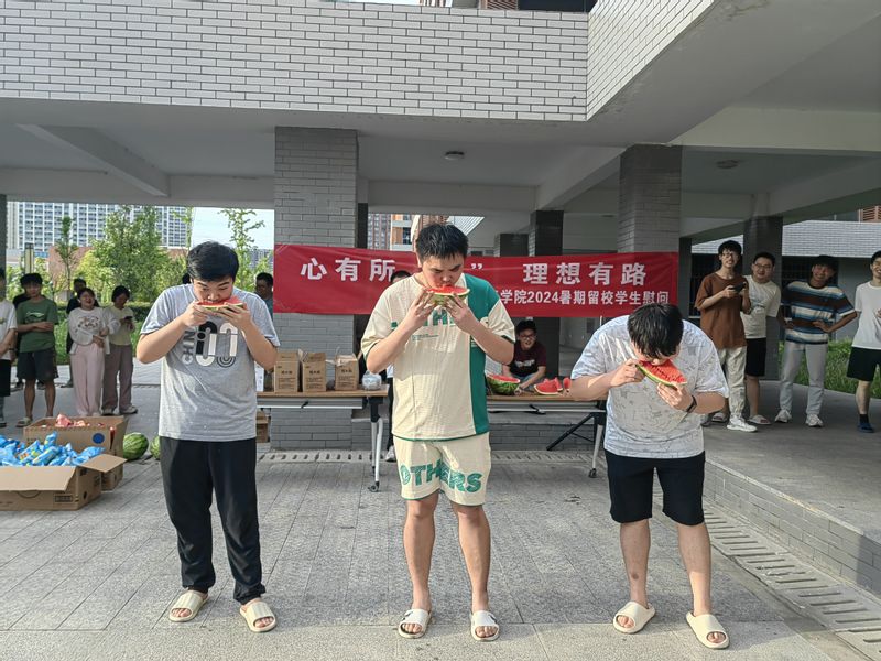为了增添活动的趣味性,活动还特别设置了“吃瓜大赛”环节。随着倒计时的开始,参赛的同学们迅速进入状态,他们或优雅地细嚼慢咽,或豪放地大口啃食,现场气氛瞬间被点燃。围观的同学们也纷纷加油助威,笑声、欢呼声此起彼伏,宿舍楼下变成了一片欢乐的海洋。经过一番激烈的角逐,几位“吃瓜高手”脱颖而出,不仅赢得了半个西瓜作为奖品,更收获了满满的成就感与幸福感。这份简单而纯粹的快乐,成为了他们考研路上难忘的记忆。