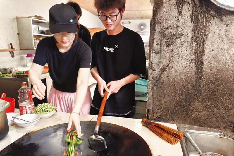 “纸上得来终觉浅,得知此事要躬行。”为深刻感受当年红军的艰苦生活,实践团成员参与了“红军的一天”体验教学。踏上崎岖的山路,进行了一场急行军,重走红军挑粮小道。在3.5公里的山路急行中,汗水浸湿了衣衫,疲惫挑战着极限。在井冈山老乡家里,实践团成员开展自制红军餐的体验活动,在老乡的指导下,团结协作、分工明确,生火、洗菜、做饭,有条不紊地体验了一次制作红军餐。夜幕降临,实践团还围坐在教室里,学习编织红军草鞋,唱响红色歌曲,分享心得体会。在长途跋涉与自力更生的生活实践中,这份纯真的革命情怀在每个人心中久久回荡。
