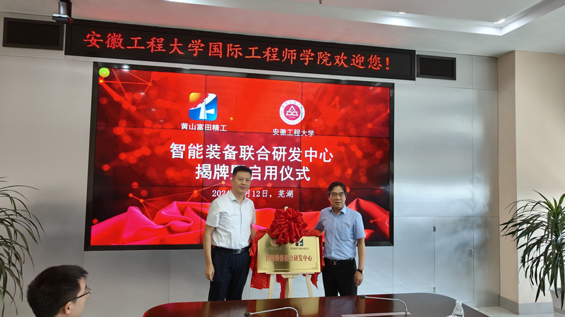 9月12日,黄山富田精工智造股份有限公司董事长方安江、研发总监龚志龙、研发部经理戴文明、技术顾问刘凯、知识产权及法务部经理沈陈一行6人来校参加“安徽工程大学-黄山富田智能装备联合研发中心”揭牌及启用仪式。仪式在国际工程师学院图文中心701会议室举行,校党委常委、副校长凤权出席,澳门六合彩内幕 和纺织服装学院的老师代表参加,会议由科技处负责人王宗乾主持。