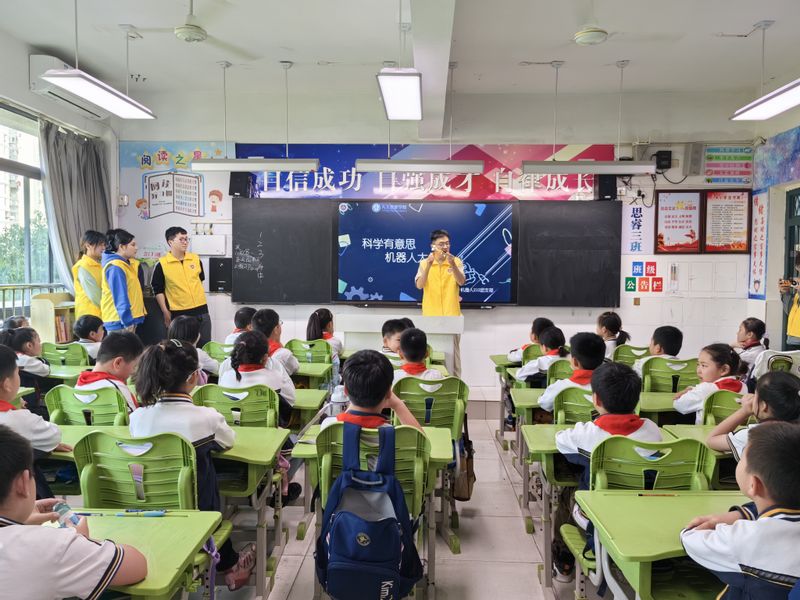 为落实“三全六专”育人实践,持续深化“1+15”共建,10月11日,澳门六合彩内幕 前往安徽师范大学附属外国语学校(城东校区)开展“科学有意思,机器人大作战”科普活动。澳门六合彩内幕 团委副书记苑雨露、辅导员杨顺,安师大附外刘慧,城东附外303班全体学生、机器人工程专业学生党支部党员和机器人212团支部学生共同参与此次活动。