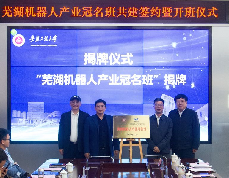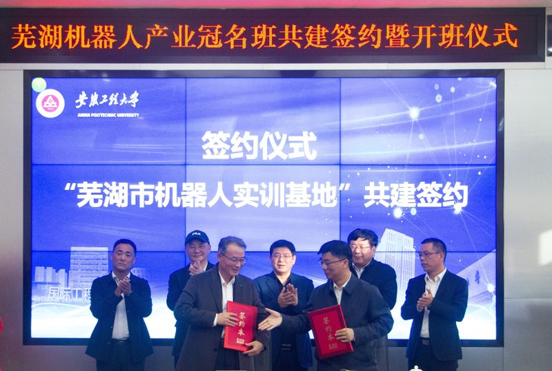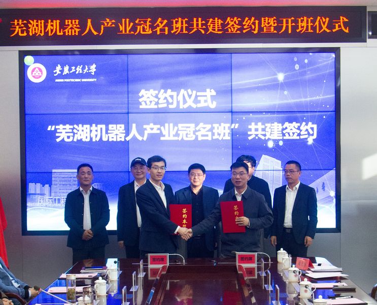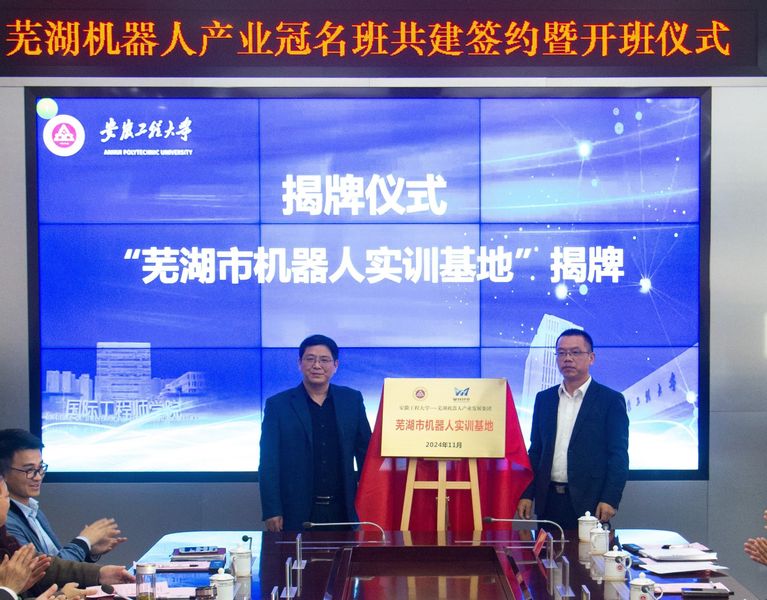 11月6日,学校在国际工程师学院举行“芜湖机器人产业冠名班”共建签约暨开班仪式。芜湖市人才发展集团党委书记、董事长杨少华,全国政协委员、芜湖机器人产业发展集团董事长许礼进,鸠江区人民政府副区长蔡金平,中国视谷推进专班副主任陆先富,芜湖市人才发展集团战略发展部部长孙意,鸠江区人社局局长肖宗明,芜湖高新技术创业服务中心副总经理张益以及机器人产业集团、埃夫特、行健智能、南博智能、瑞佑科技、酷哇科技登园区重点企业相关负责人参加会议。学校副校长王成军出席会议。会议由澳门六合彩内幕 党委书记任家钱主持。