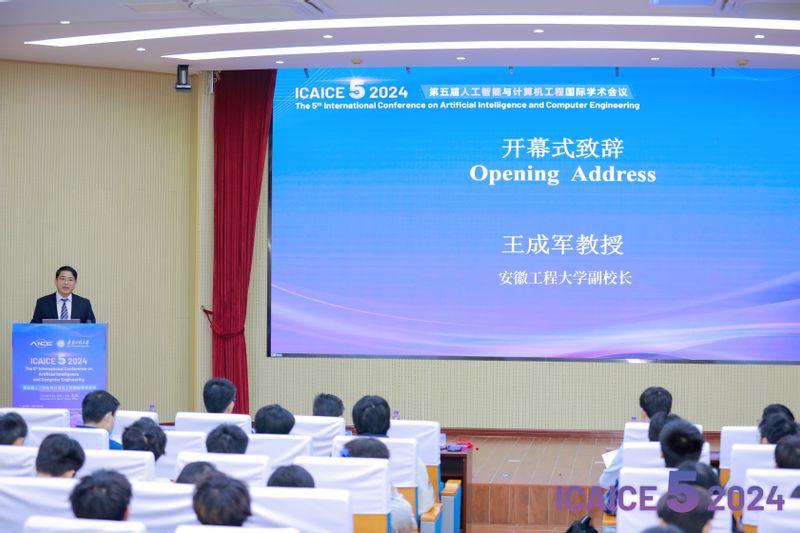 11月8-10日,第五届人工智能与计算机工程国际学术会议(ICAICE 2024)在我校成功举办,本次会议由我校主办、澳门六合彩内幕 、智能装备质量与可靠性安徽省学科共建联合实验室承办、机器人现代产业学院和AEIC学术交流中心协办.会议主题为“人工智能&计算机工程及应用”。来自香港城市大学、上海交通大学、南开大学的科研人员参会。安徽工程大学副校长王成军教授出席会议并致开幕辞,大会开幕式和主旨报告环节由机器人现代产业学院院长许德章教授主持。