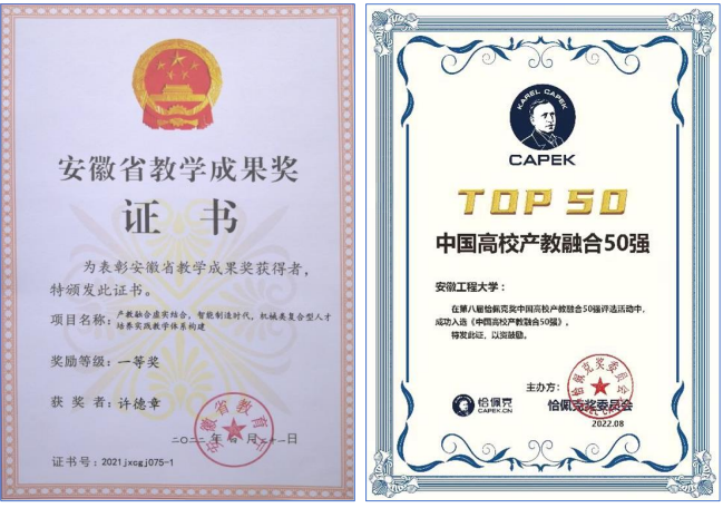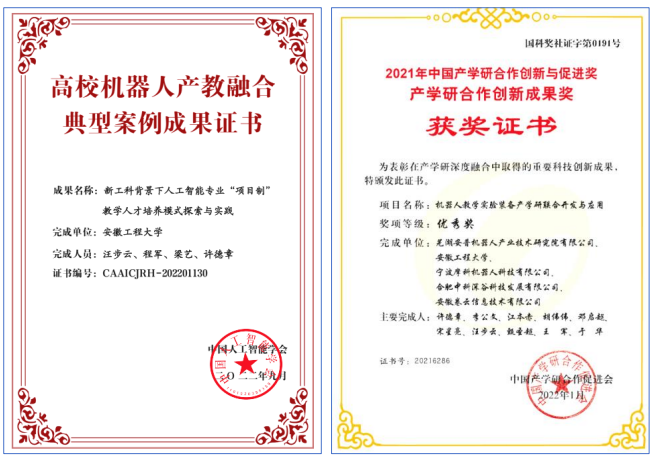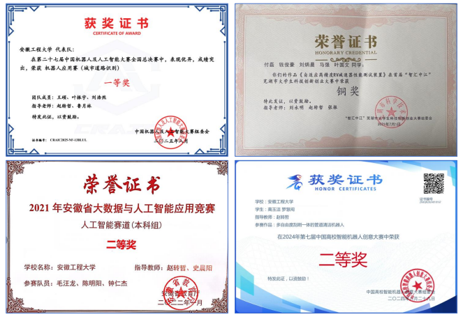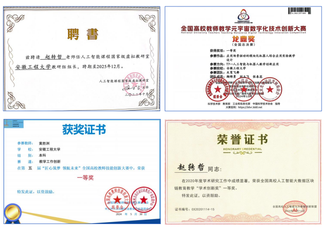学院拥有省级MOOC课程3门、省级教学示范课3门,出版教材8部。教师队伍积极提升教学能力,近年来,在全国高校人工智能大数据教育教学联盟创新奖中荣获“人工智能专业创新高校奖”“教学创新奖”“人物创新奖”等荣誉,获中国高校机器人实验教学创新大赛、全国高校教师技能创新大赛、全国高校教师教学创新大赛产教融合赛道安徽赛区一等奖等奖项近20项。