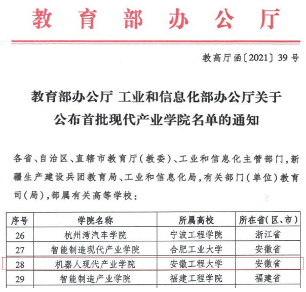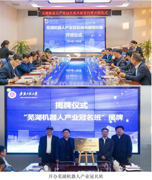 学院聚焦人工智能与机器人领域人才需求,创新产教深度融合的人才培养体系;依托埃夫特智能机器人有限公司等行业龙头企业资源,结合产业开办“机器人冠名班”“人工智能微专业”。企业深度参与学院的人才培养各环节,在培养方案、课程讲授、实践课程和校外实践基地等方面提供支持。我校机器人产业学院2021年获批教育部首批现代产业学院。