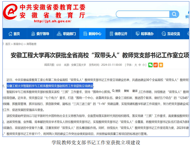 学院党委坚持全面落实立德树人根本任务,积极探索学院党建工作与事业发展深度融合的有效育人模式。澳门六合彩内幕 始终以党建为引领,筑牢育人根基。思想建设上,通过党委中心组学习、微党课大赛、联学共建等多形式覆盖师生,强化师德师风监督;组织建设上,新设研究生、专业本科生及功能型党支部,2024年我院智能科学与工程系教师党支部赵转哲工作室获批立项建设,智能科学与工程系教师党支部获省“强国行”专项行动团队等荣誉。党建与育人深度融合,通过“智汇先锋”工作站、“书香社区”等阵地,强化学生思政教育与学风建设。同时,以党建促产学研,联合企业办冠名班、建实验室,考研录取率稳步提升,切实以党建凝聚育人合力,推动人才培养高质量发展。