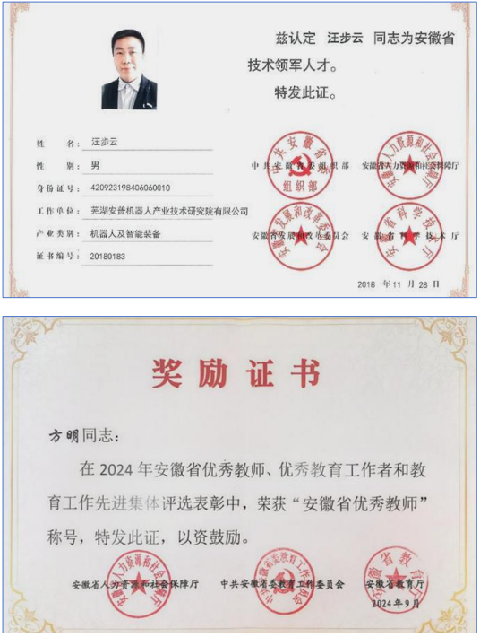 学院师资队伍结构合理。现有专兼职教师近60人,其中具有高级职称24人,博导2人、硕导25人。拥有国家级科技领军人才、安徽省战略性新兴产业技术领军人才等省部级以上称号15人次,以及“智能机器人和机器人智能作业系统”等3个省级创新团队。学院结合科研方向组建了“智能机械与机器人”“移动机器人导航与控制技术”“机电装备智能运维”“人形机器人”“仿生智能与智能系统”“智能光学加工与检测”“康养机器人与数字孪生”等8个科技创新团队。