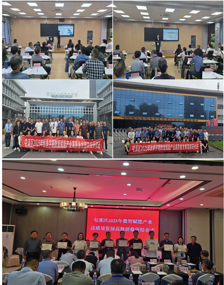 此次研修班紧紧围绕数智赋能产业高质量发展主题,聚焦提升干部业务素养、优化管理效能、赋能产业发展,邀请了校领导和相关部门、芜湖市人才发展集团、芜湖市发改委、埃夫特智能机器人股份有限公司、安徽逐行科技有限公司、安徽佐标智能科技有限公司相关负责人为学员授课,教学内容涉及知识产权、成果转化、创新方法及应用、企业管理、人工智能产业发展、数字孪生与智能制造、智能机器人及场景应用、芜湖产业发展政策解读、芜湖人才招引政策解读等。实践教学环节参观了芜湖市博物馆、产业创新馆、奇瑞汽车、海螺集团、埃夫特、行健机器人、芜湖江北新区规划展示馆、芜湖智算经济产业园芜湖一体化智算中心、中国联通长三角(芜湖)智算中心等实践教学基地。此次研修班的顺利举办彰显了学校“以工为主、支撑产业、服务地方”的特色定位,是学校支撑区域发展、深化校地合作的生动体现,同时,在“十四五”规划收官、“十五五”谋篇开局的关键节点上,为屯溪区产业高质量发展注入了新动力。
